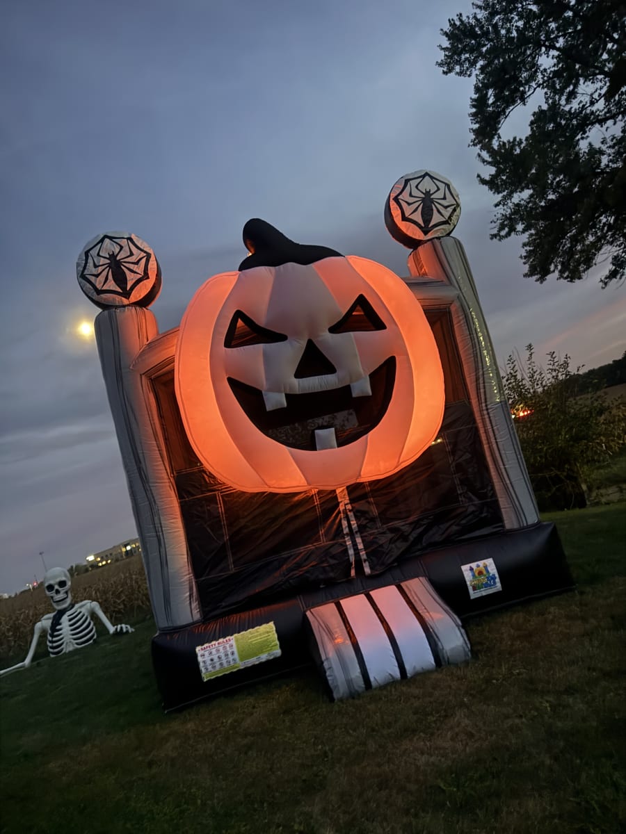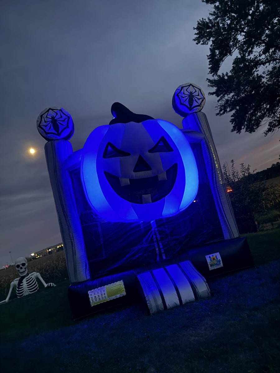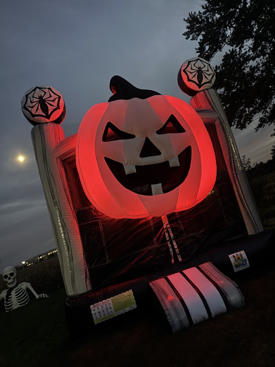 Bring the spirit of Halloween to your event with our Halloween Pumpkin Bounce House! This inflatable features a giant jack-o’-lantern face and spooky spider web accents, making it the perfect centerpiece for fall festivals, school events, and Halloween parties. Kids will love jumping inside this festive inflatable while parents enjoy the fun seasonal theme. Safe, exciting, and full of Halloween charm—this bounce house is sure to make your celebration unforgettable!