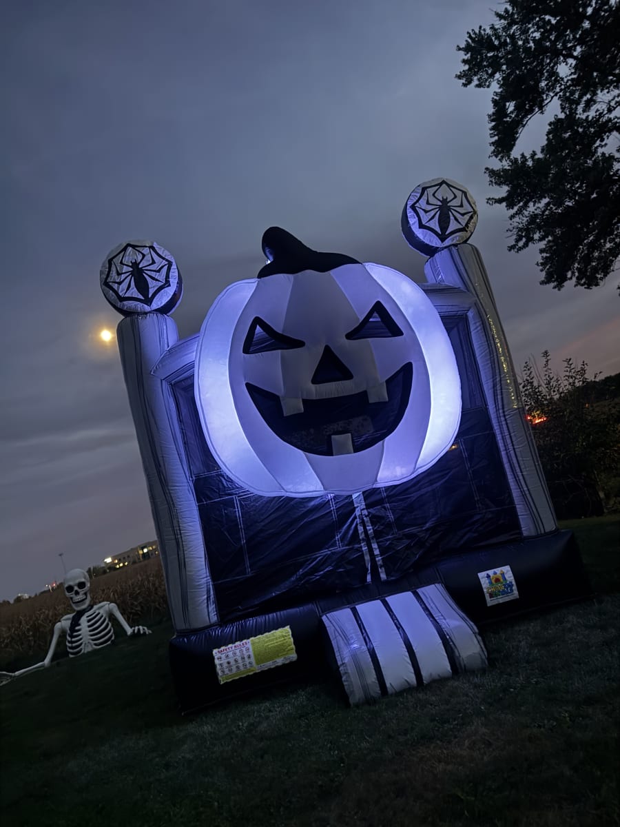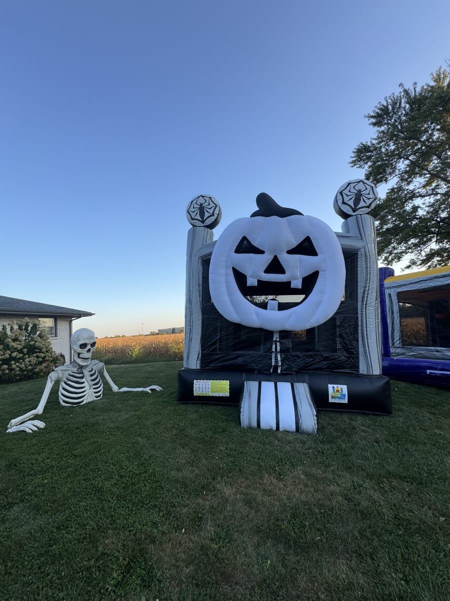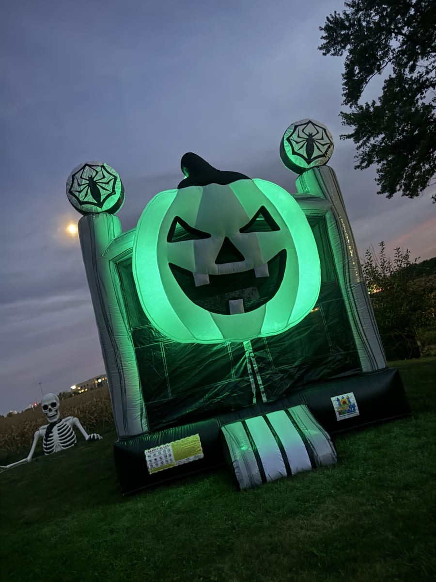 Bring the spirit of Halloween to your event with our Halloween Pumpkin Bounce House! This inflatable features a giant jack-o’-lantern face and spooky spider web accents, making it the perfect centerpiece for fall festivals, school events, and Halloween parties. Kids will love jumping inside this festive inflatable while parents enjoy the fun seasonal theme. Safe, exciting, and full of Halloween charm—this bounce house is sure to make your celebration unforgettable!